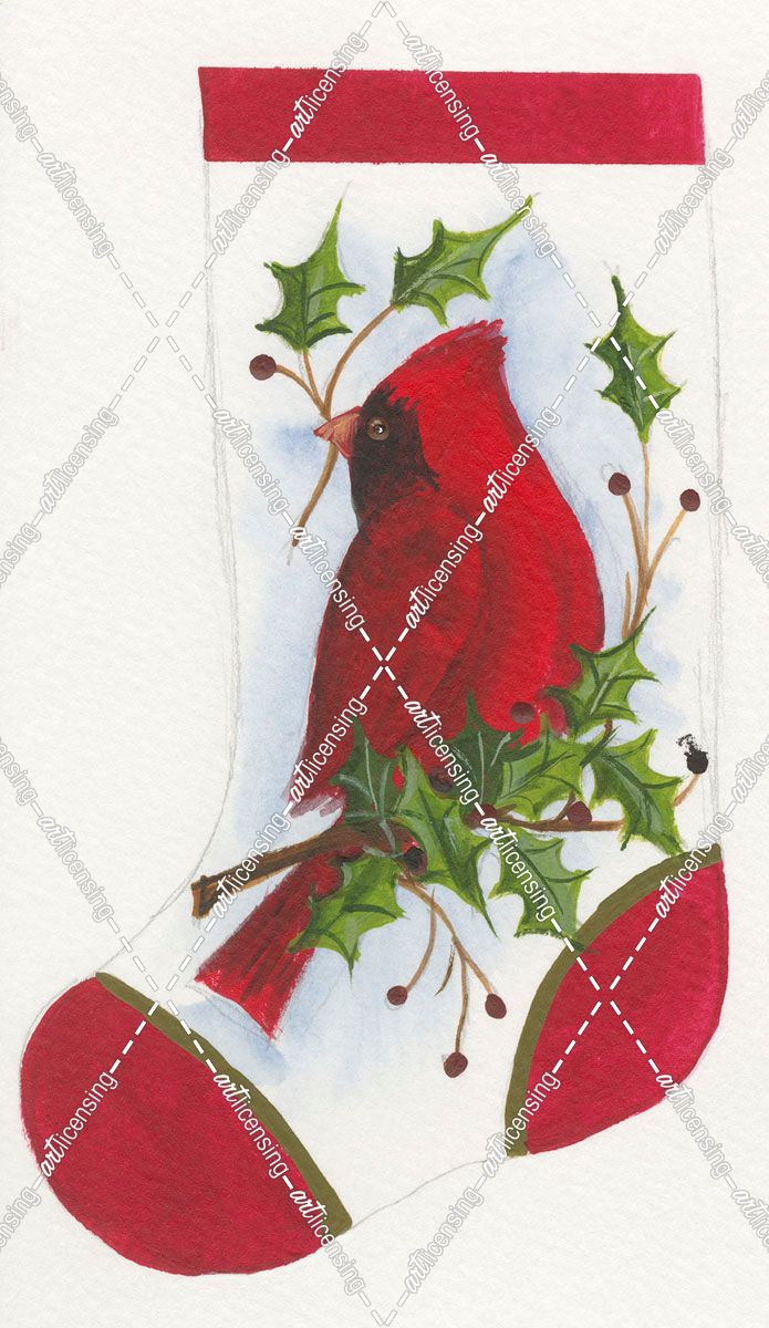 Cardinal With Holly Stocking