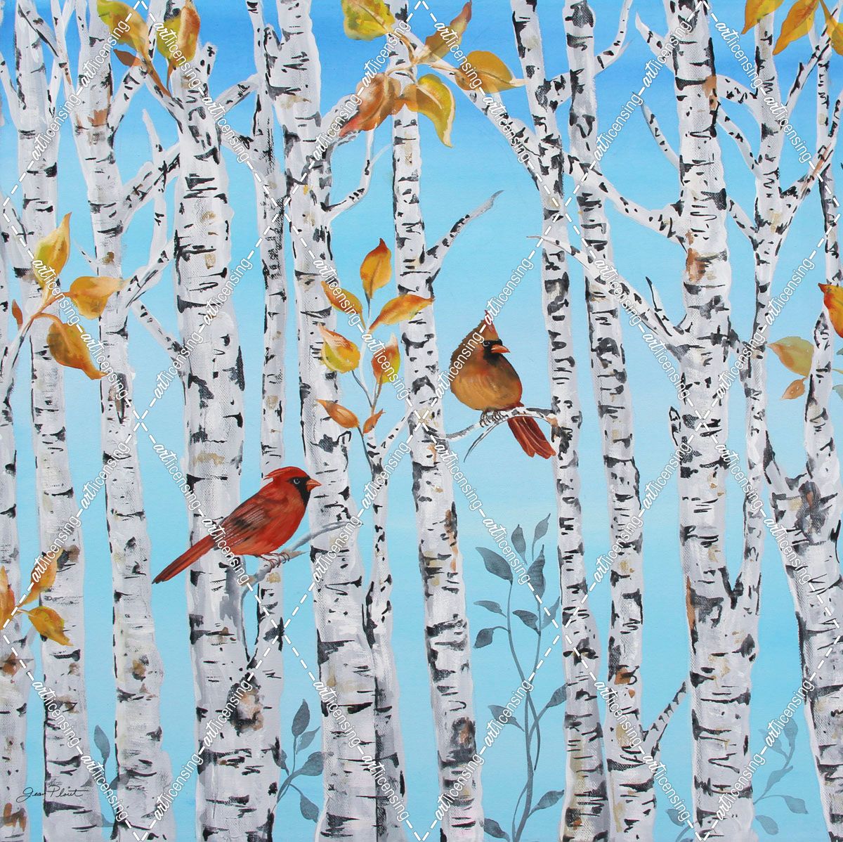 Cardinals Among The Birch-A