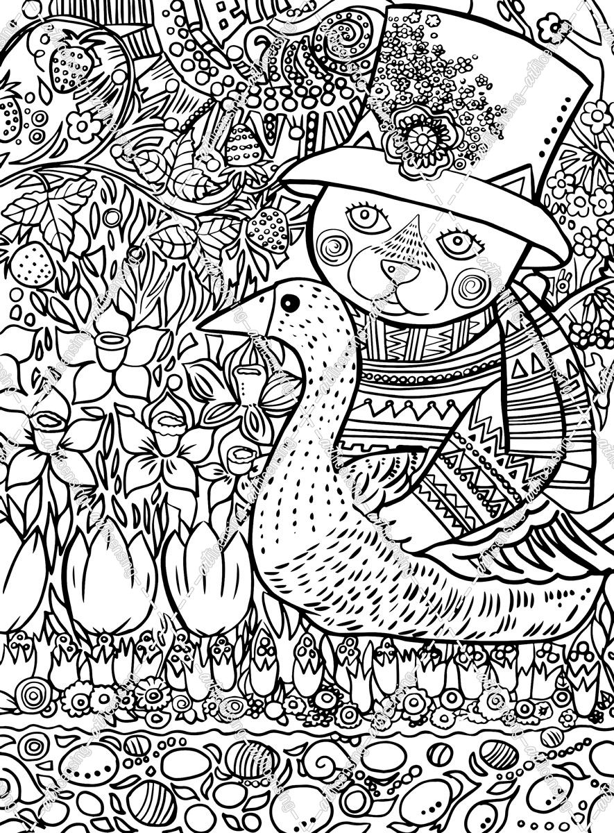 Cat with Goose Line Art