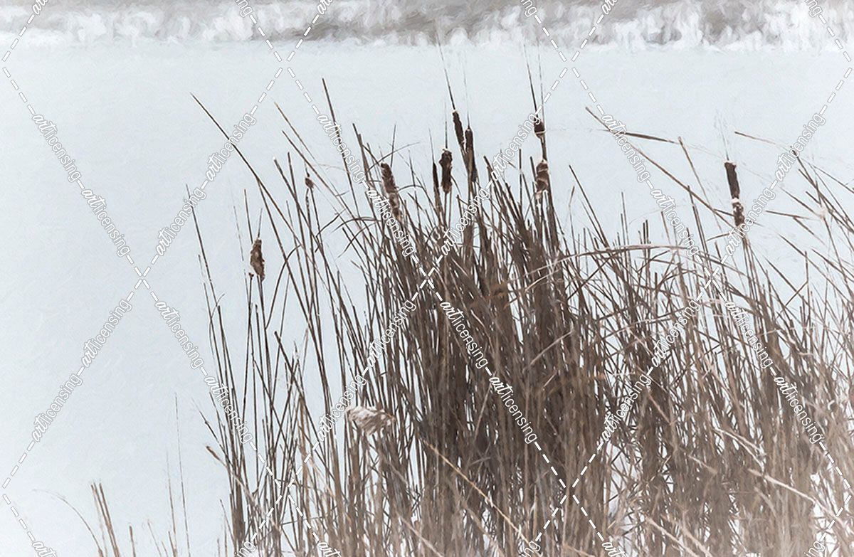 Cattails In Wind And Snow