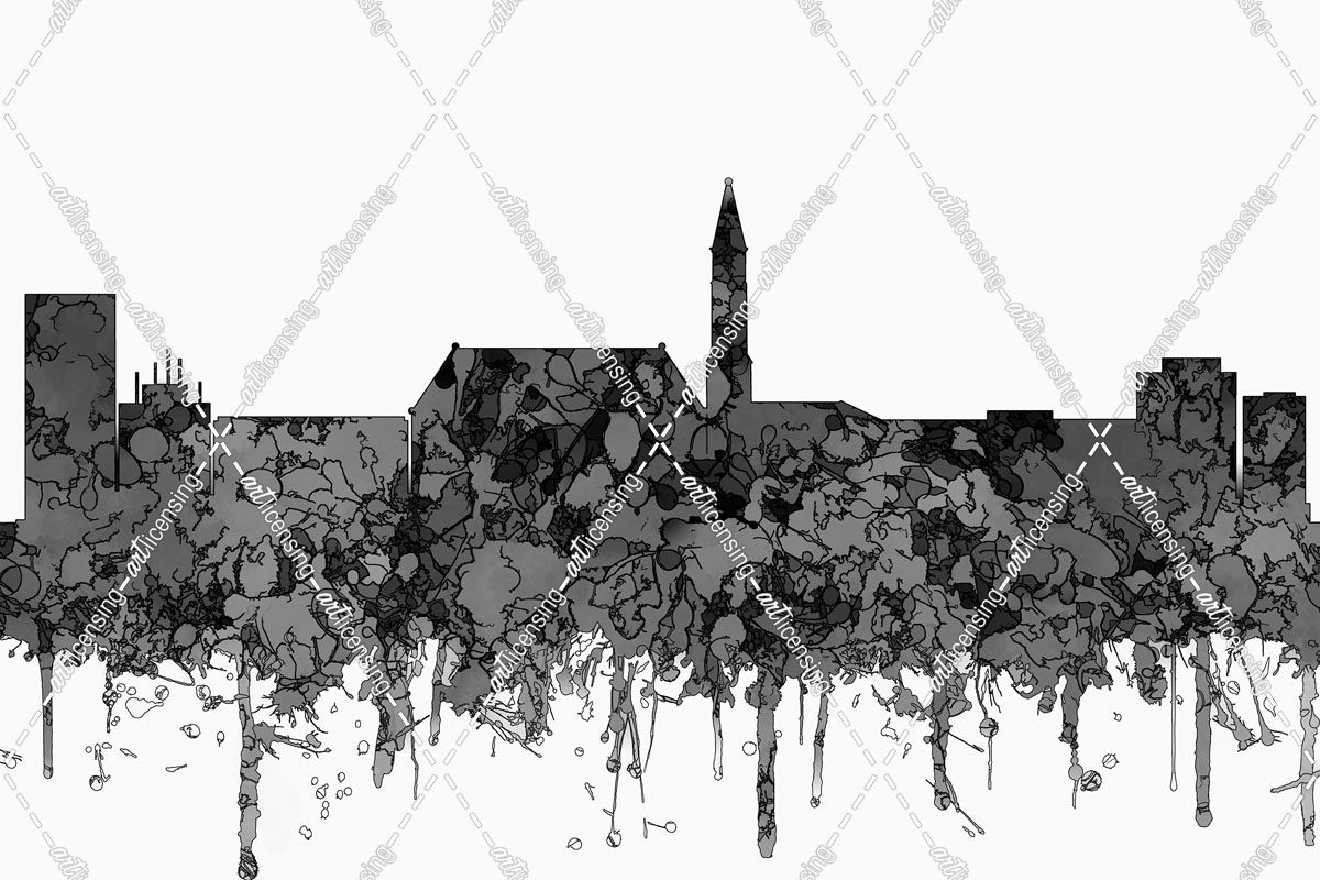 Cheyenne Wyoming Skyline-Cartoon B&W