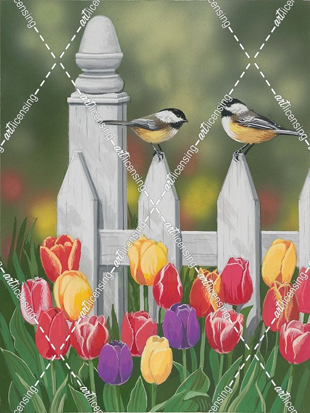 Chickadees And Tulips