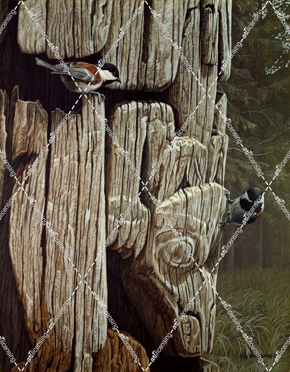 Chickadees On Totem