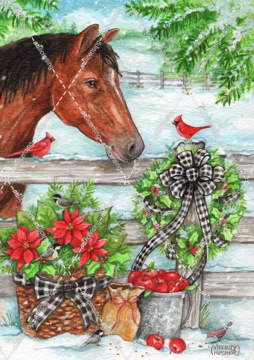 Christmas Horse and Birds Large