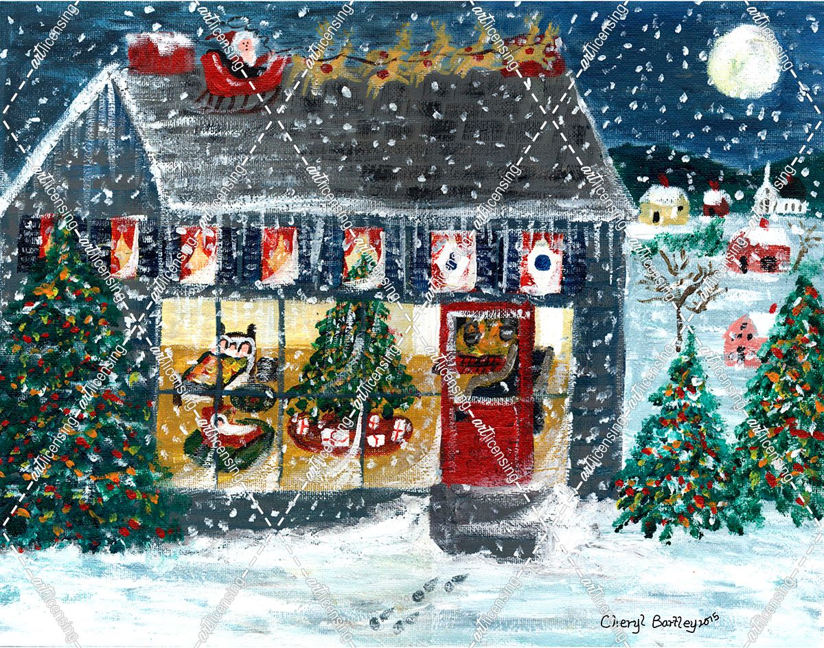 Christmas Night Folk Art Santa Reindeer