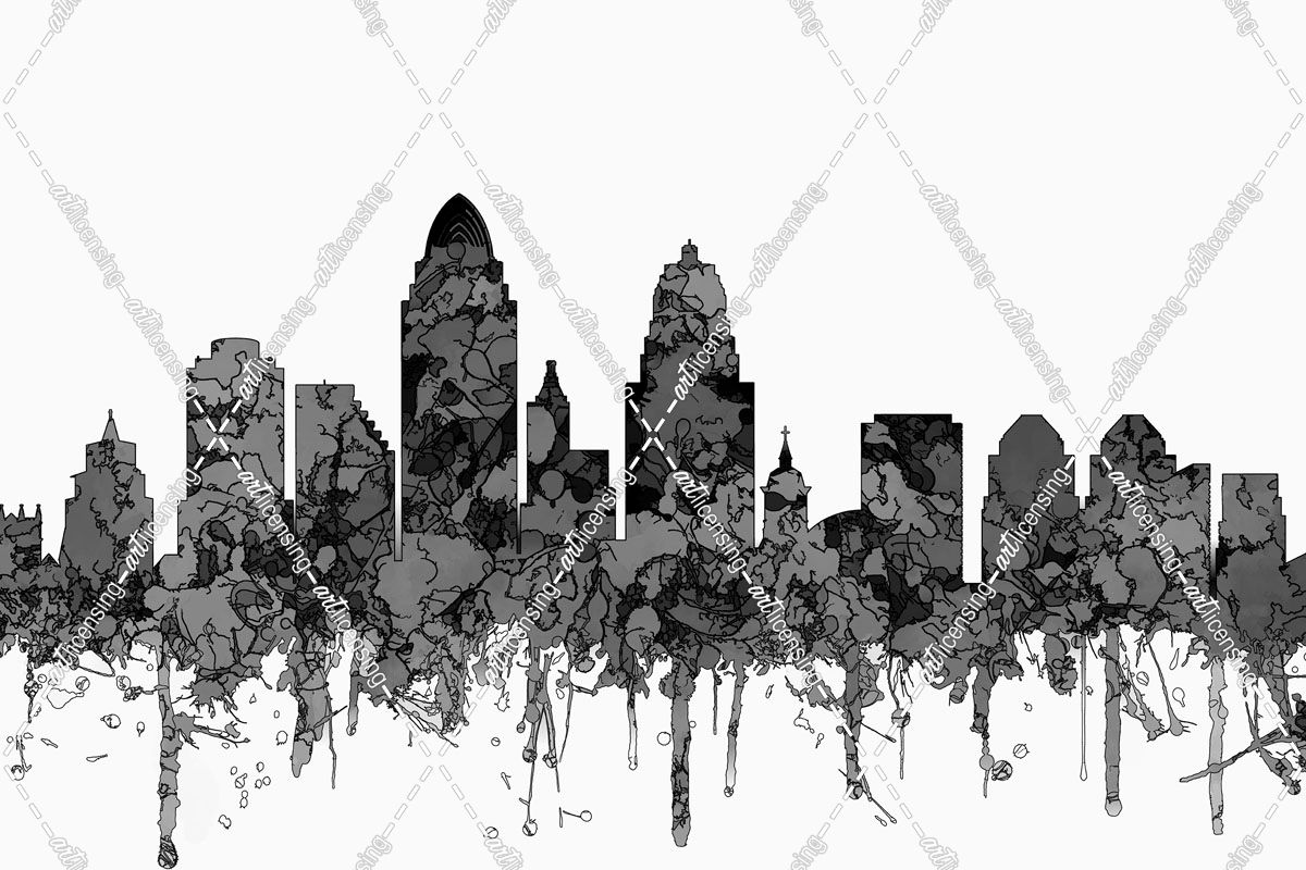 Cincinnati Ohio Skyline-Cartoon B&W