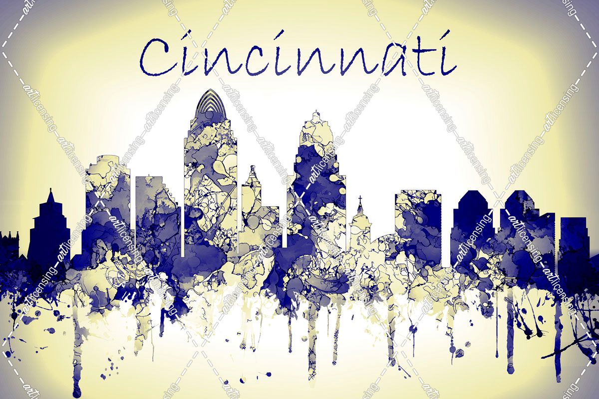 Cincinnati Ohio Skyline-Harsh Blue Yellow