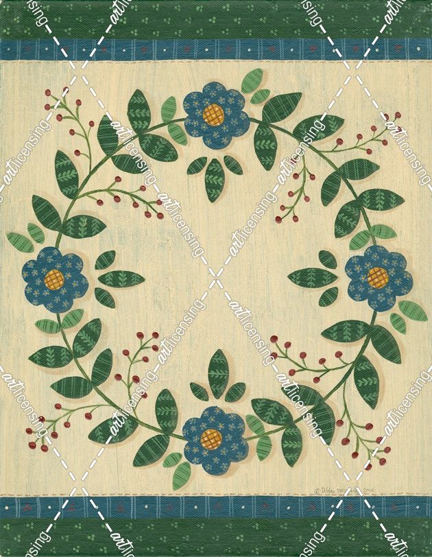 Circle Of Blue Quilt Flowers With Green Border