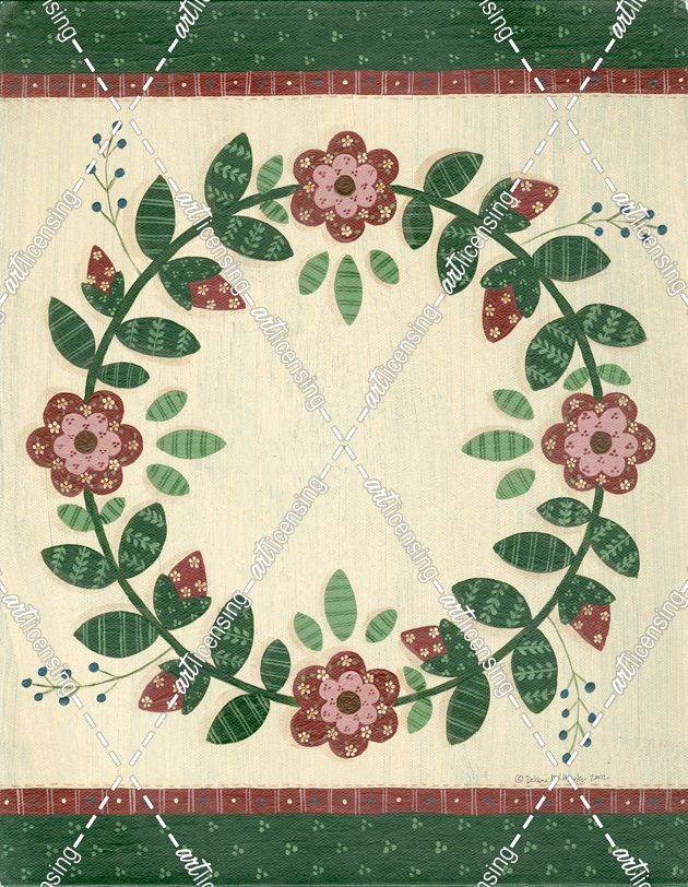 Circle Of Red Quilt Flowers With Green Border