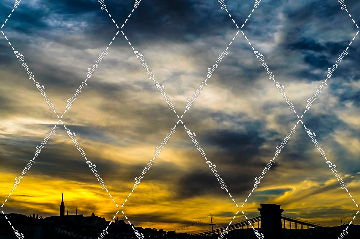 Cityscape Silhouette Under Clouds