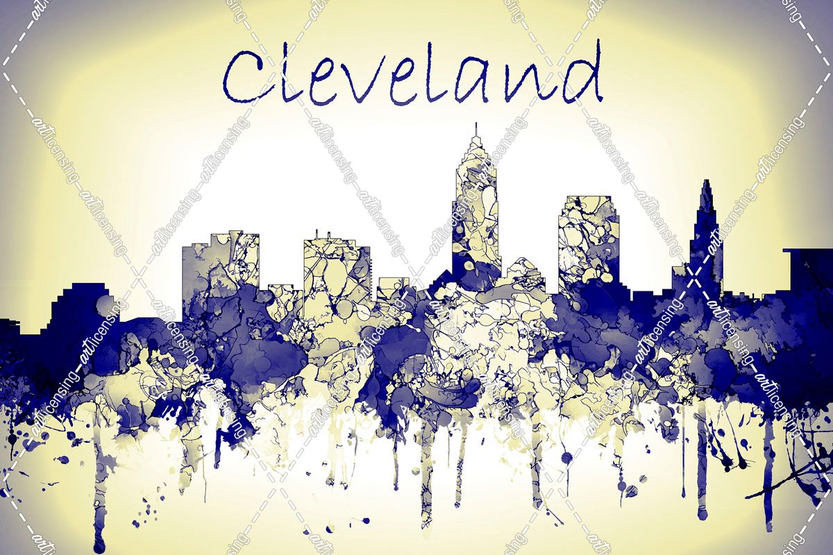 Cleveland Ohio Skyline-Harsh Blue Yellow