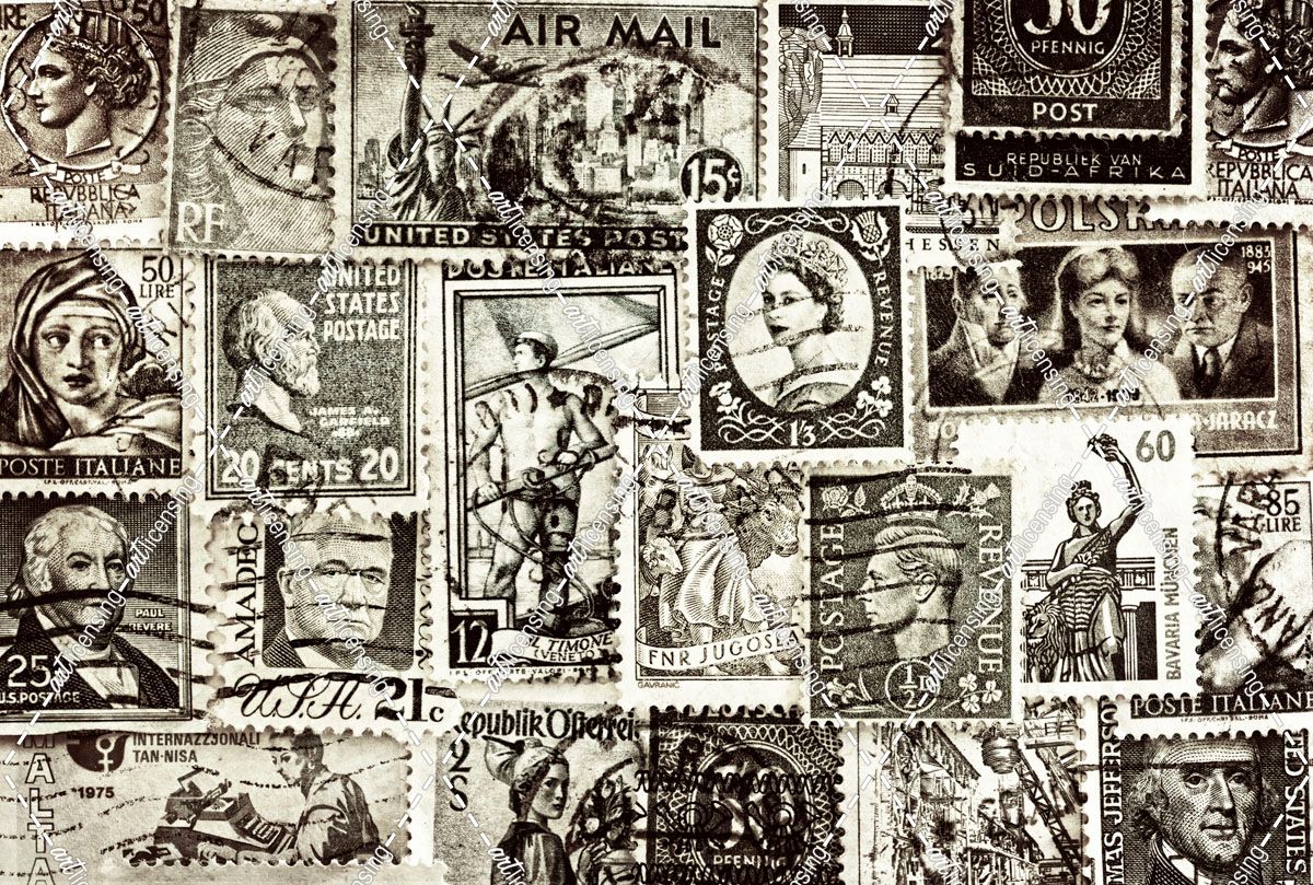 Close up of Vintage Stamps in Monochrome