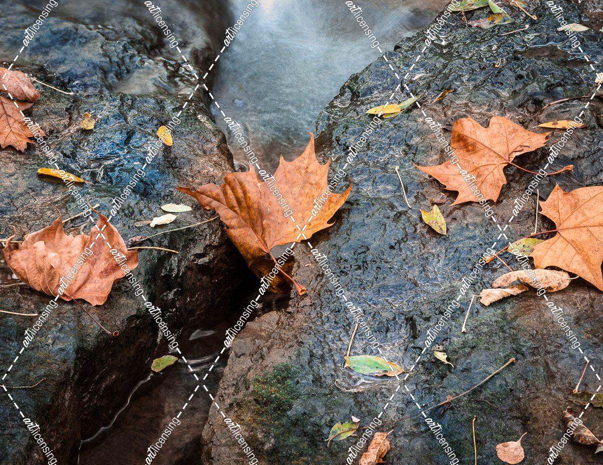 Colorful Autumn Leaves By Brook