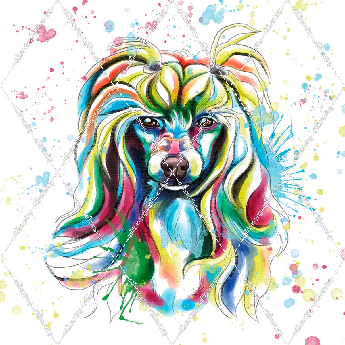 Colorful Watercolor Chinese Crested