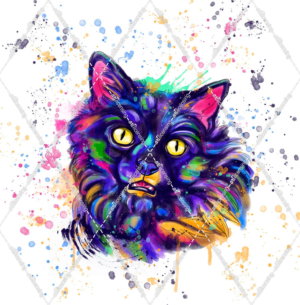 Colorful Watercolor Long Haired Cat
