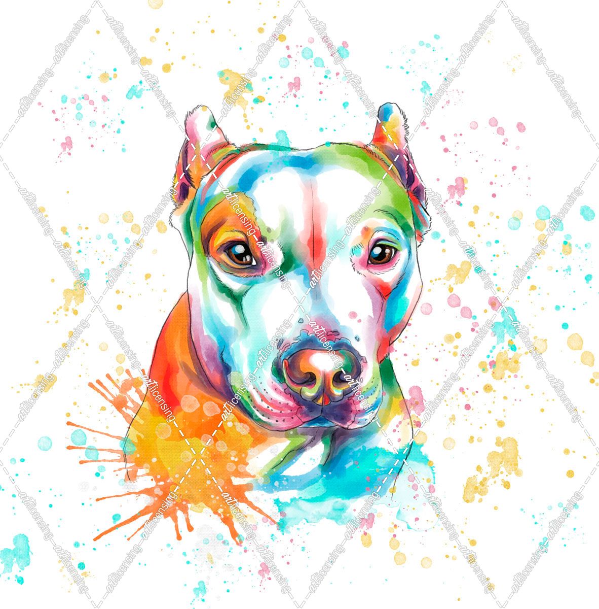 Colorful Watercolor Staffordshire Terrier