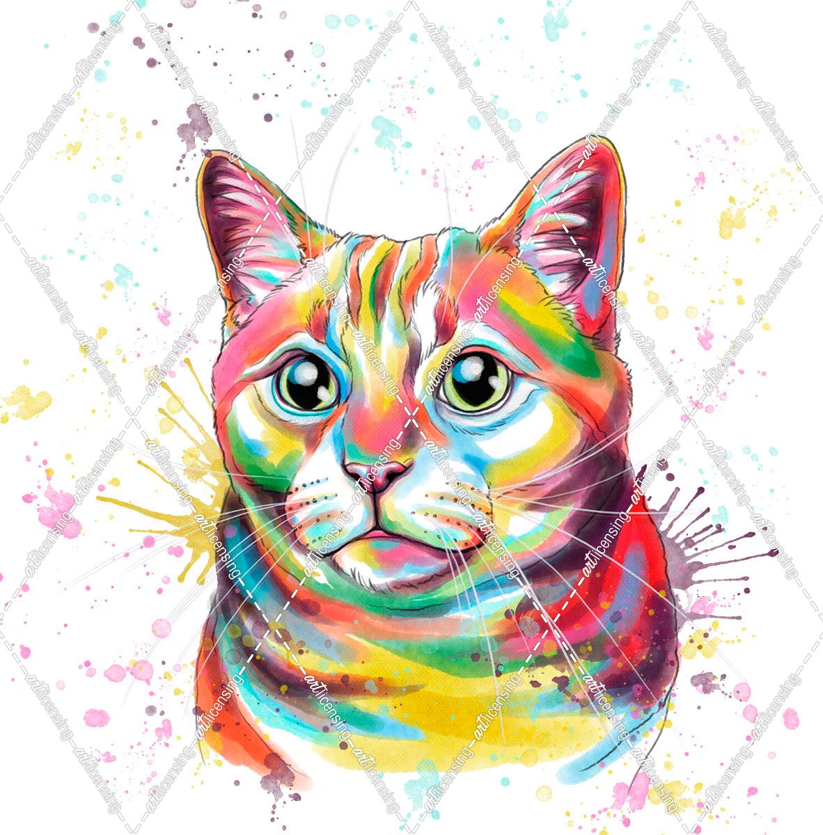 Colorful Watercolor Tabby Cat 2