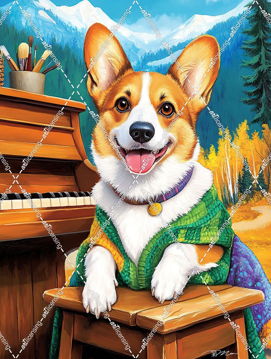 Corgi Autumn Portrait With Colorful Piano