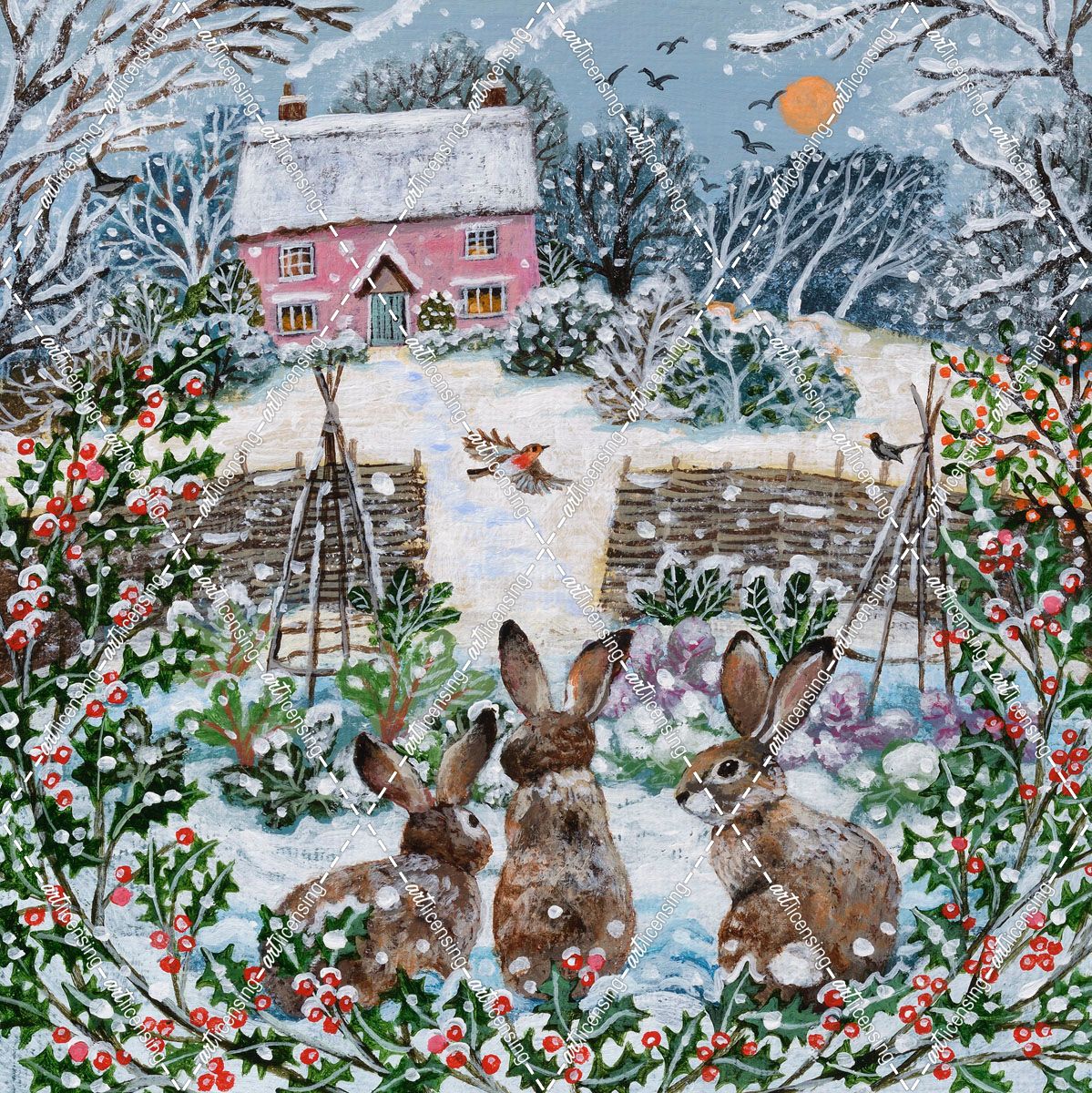 Cottage Garden And Winter Rabbits