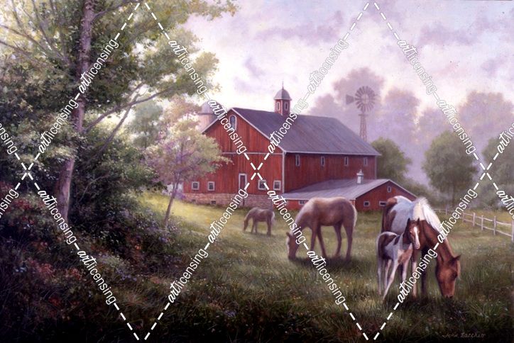 Country Road W/ Horses/Barn