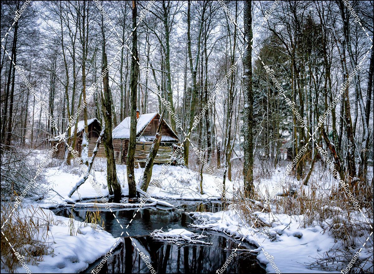 Countryside Saunas In The Winter Woods On The Banks Of A Stream