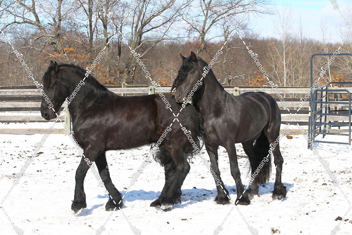 CQ2R5687 Friesians – Viking & Uther – In The Snow, Appin Farm, MI