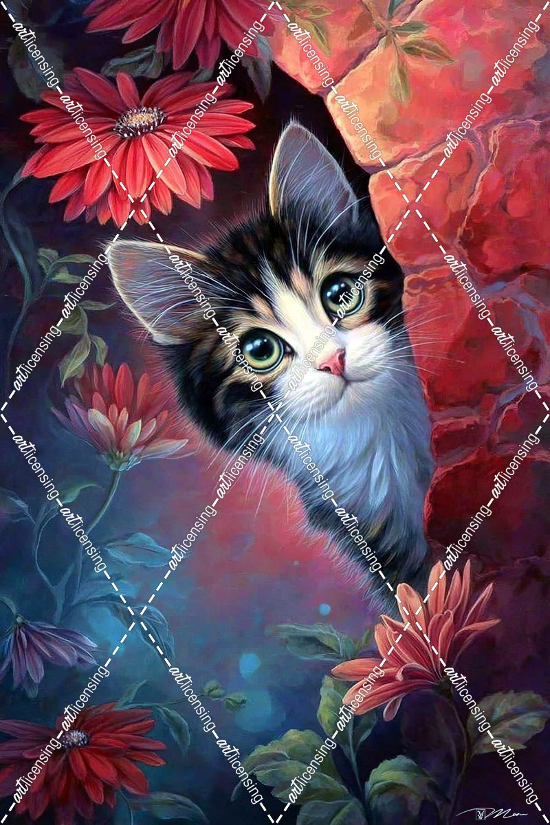 Curious Cat With Red Flowers