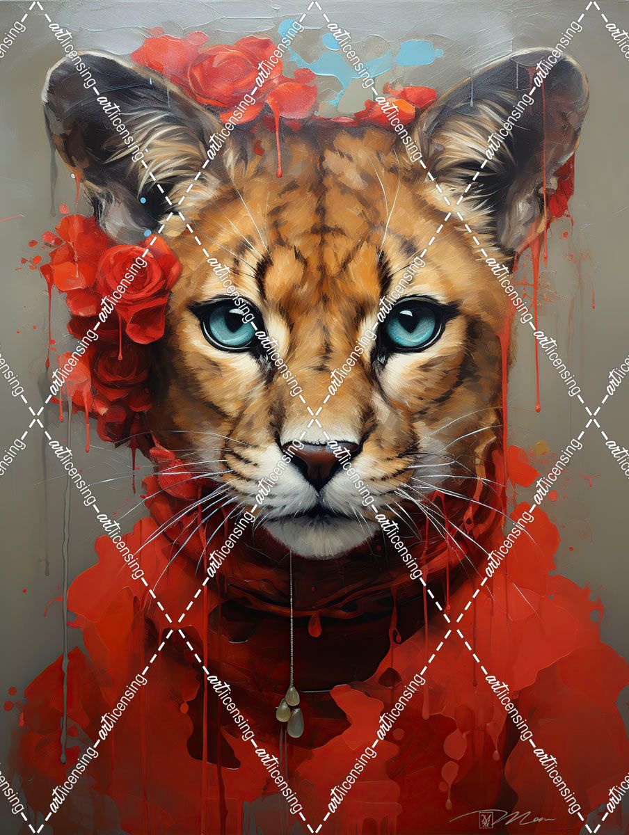 Cute Cougar With A Red Hat Baroque Style 2