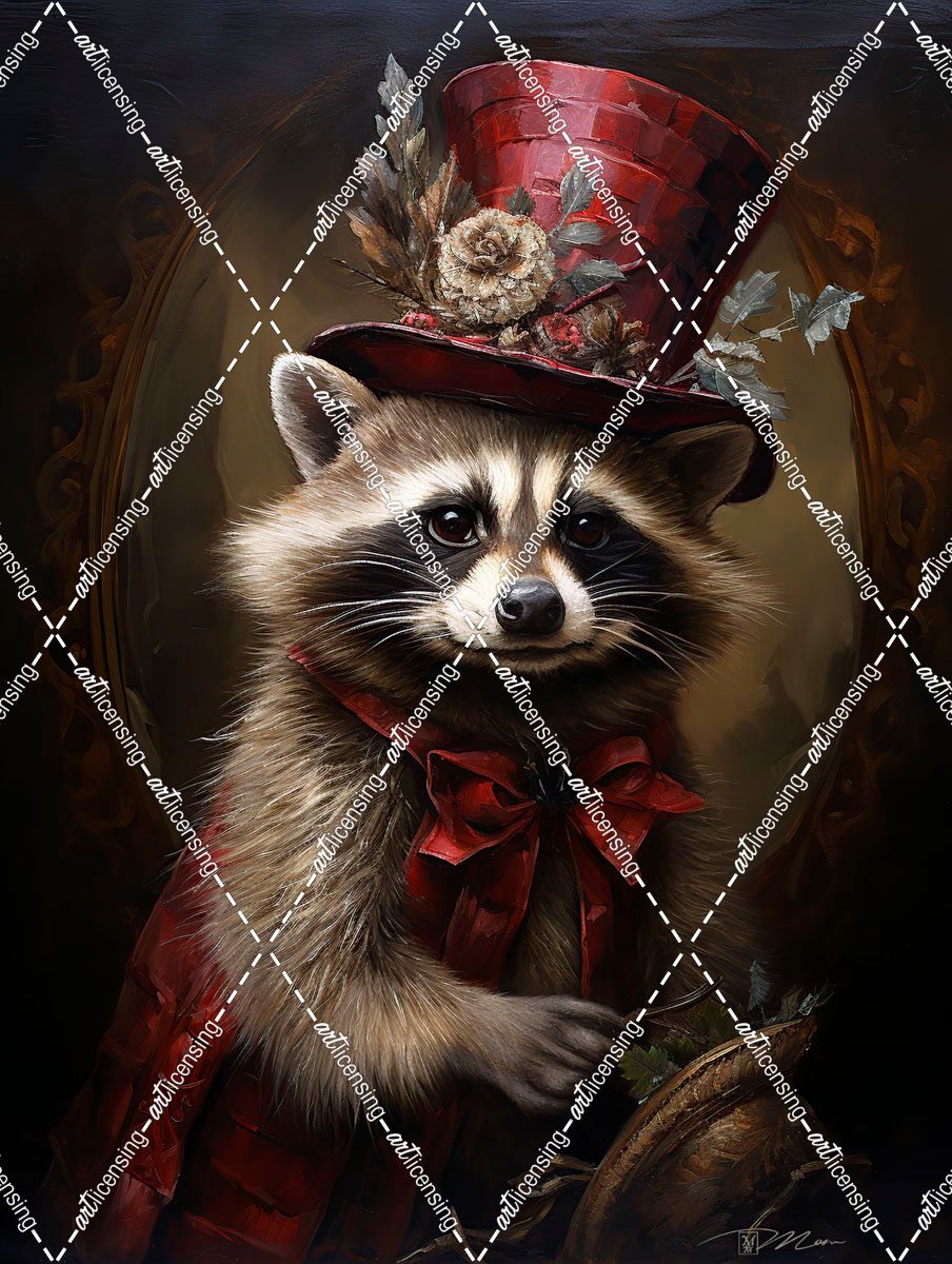 Cute Raccoon With A Red Hat Baroque Style 2