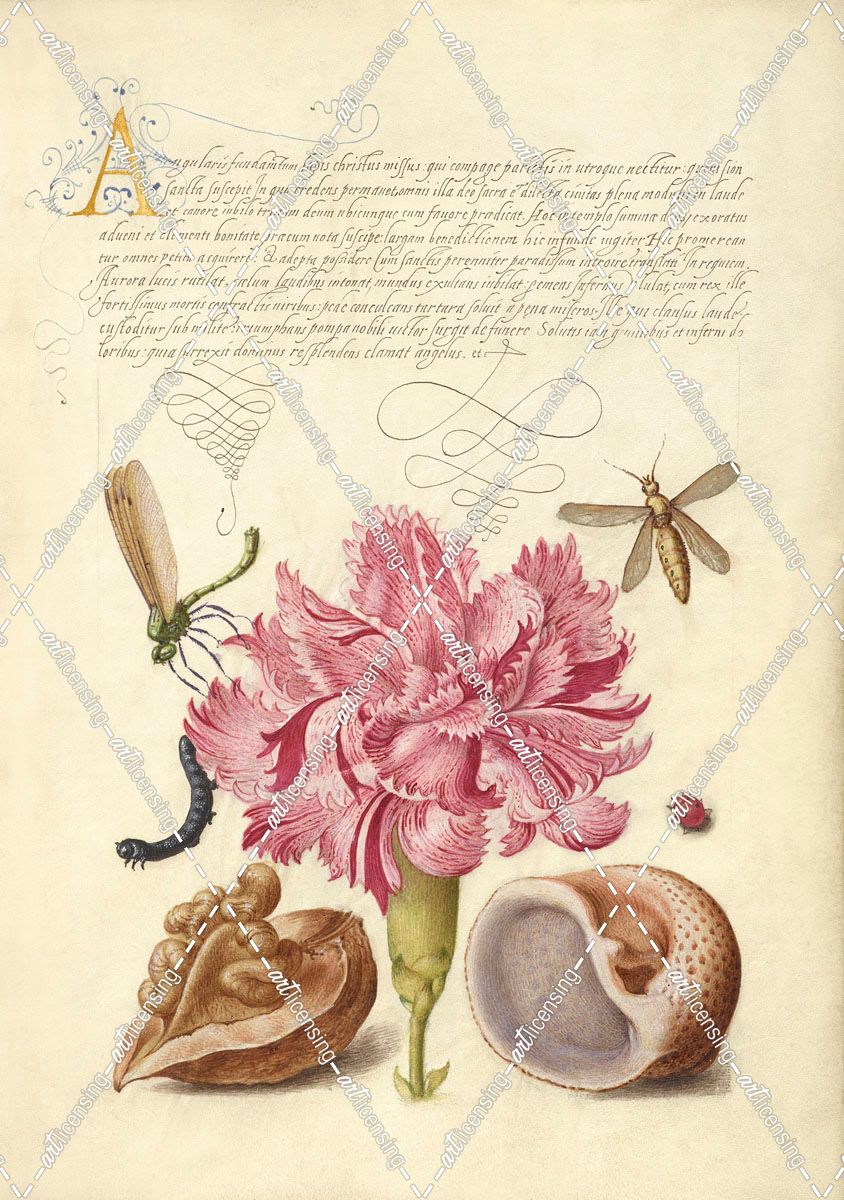 Damselfly, Carnation, Walnut, and Mollusk