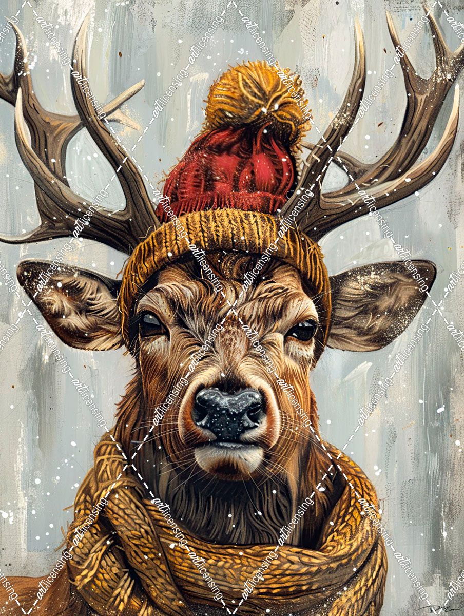 Deer With Red And Yellow Cap And Scarf