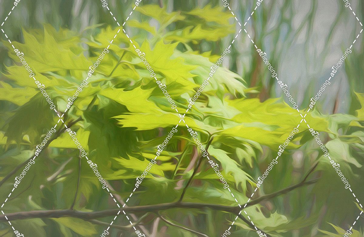 Digital Art Oak Leafs Along Pond Of Reeds