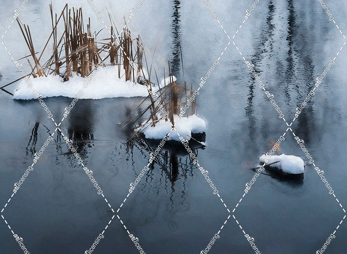 Digital Art Snow And Reeds Icy Pond