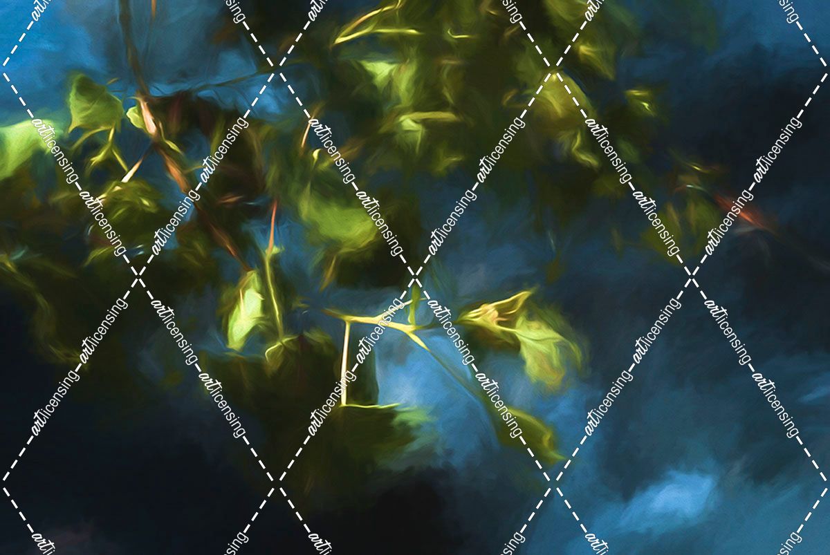 Digital Art Sunlit Tree Leafs Over Water
