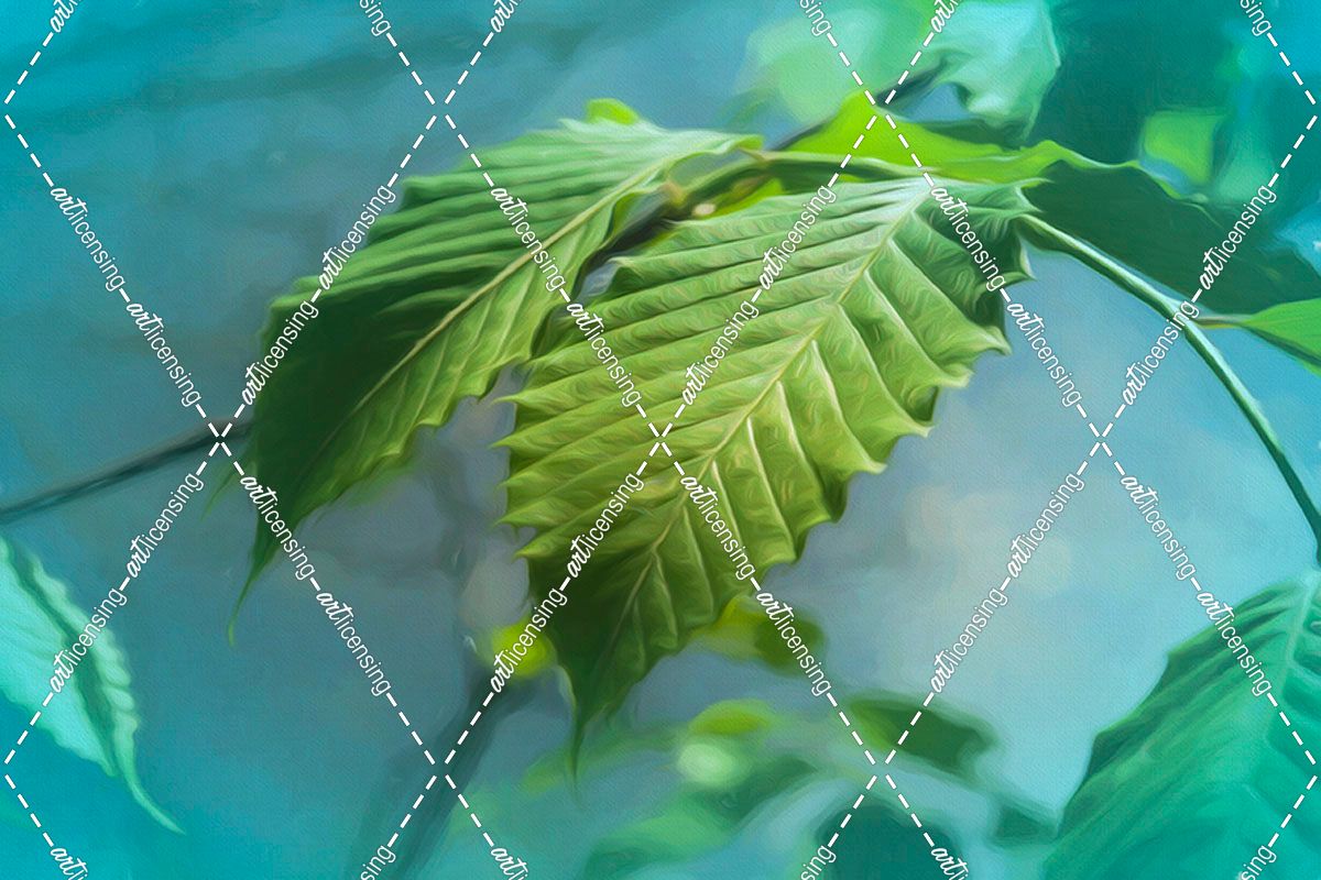 Digital Art Two Elm Leafs Done In Turquoise