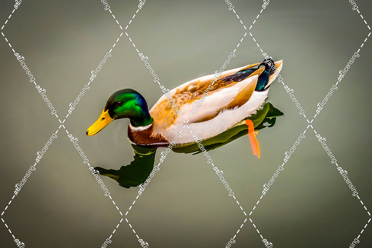 Duck on Mirrorlike Lake