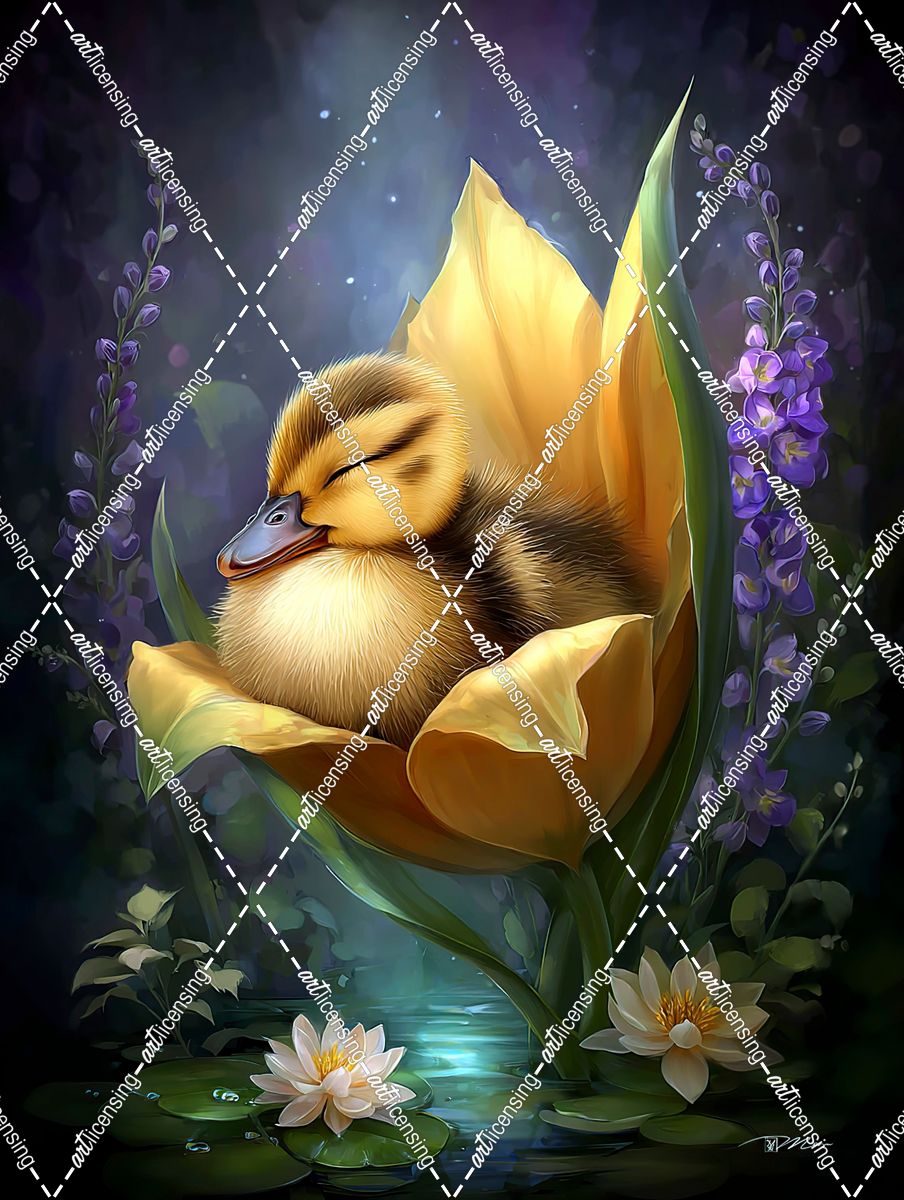 Duckling Sleeping Between Petals (2)