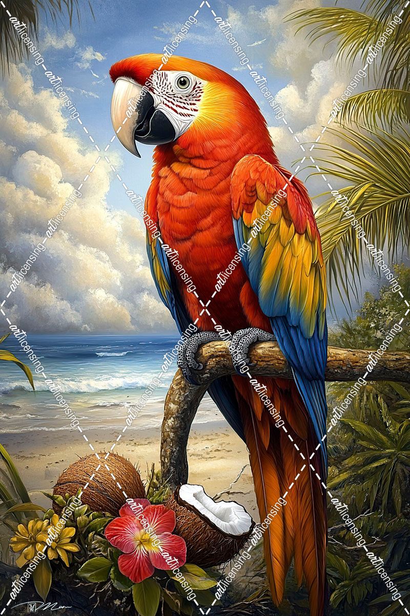 Exotic Macaw Parrot And Orchids