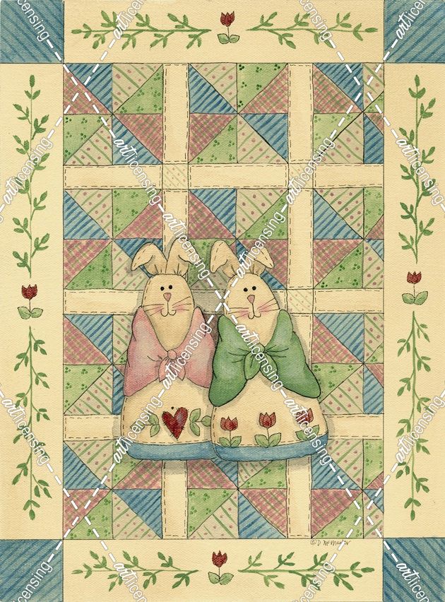 Fabric Bunnies With Quilt – B
