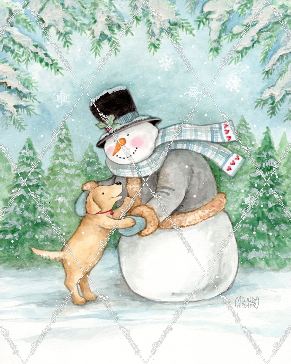Faithful Friends Snowman And Puppy