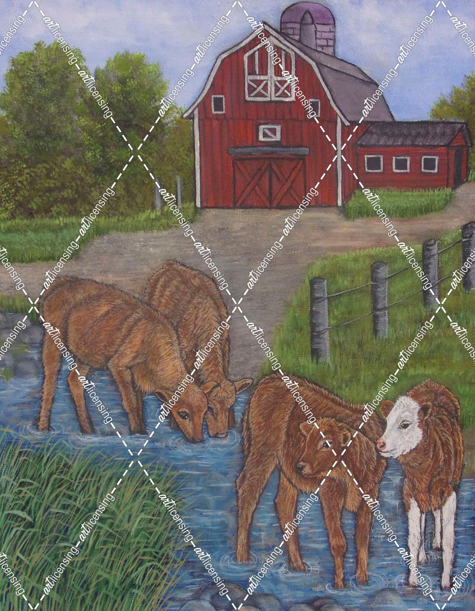 Farm Scene With Drinking Water Calves