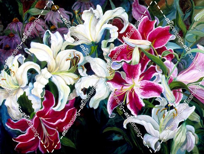 Field Of White And Pink Lilies
