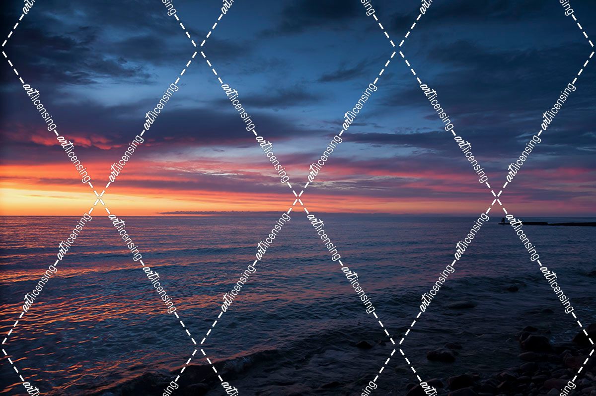 Fiery Sunset Seaside With Pier