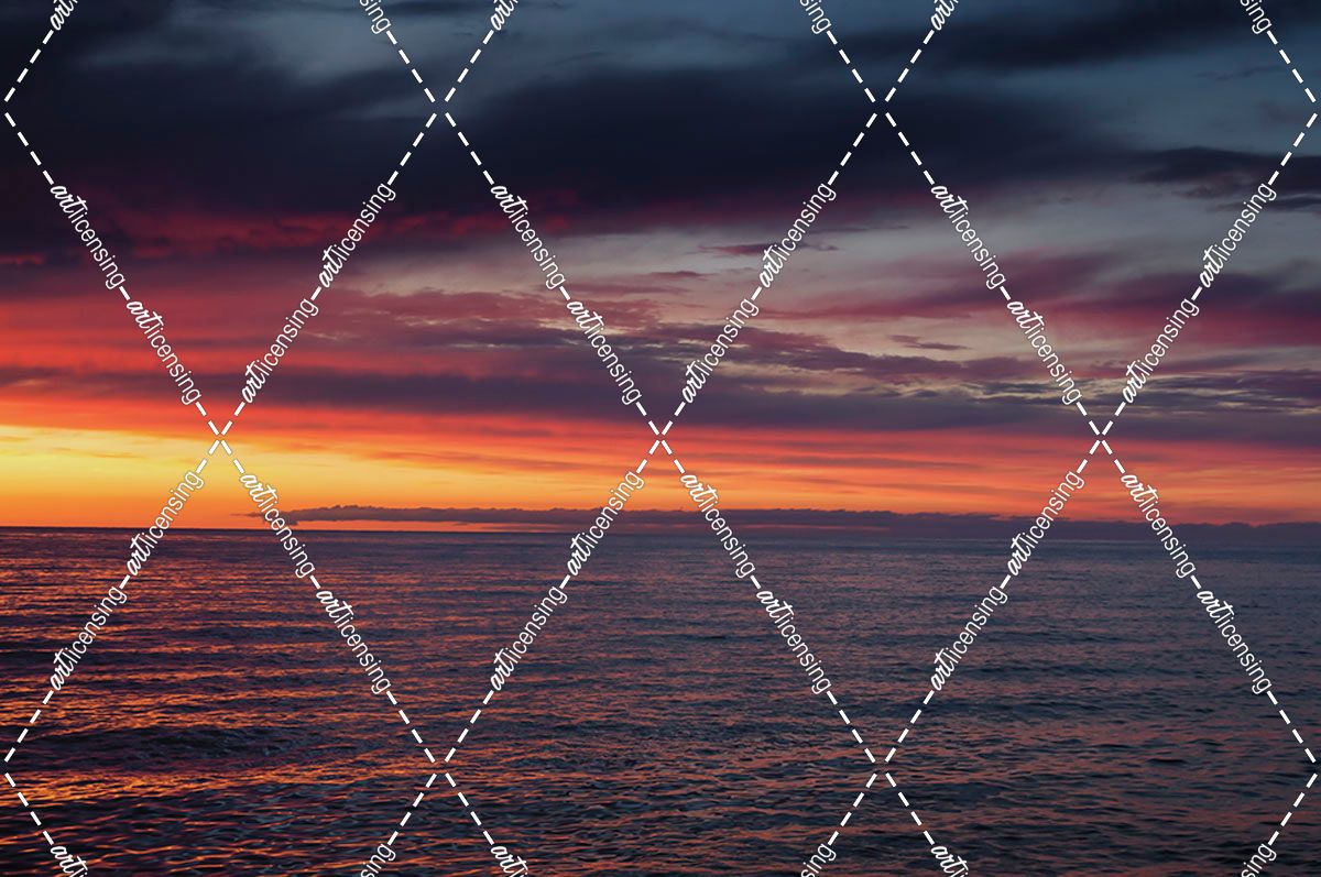 Fiery Sunset With Clouds Seaside Summer