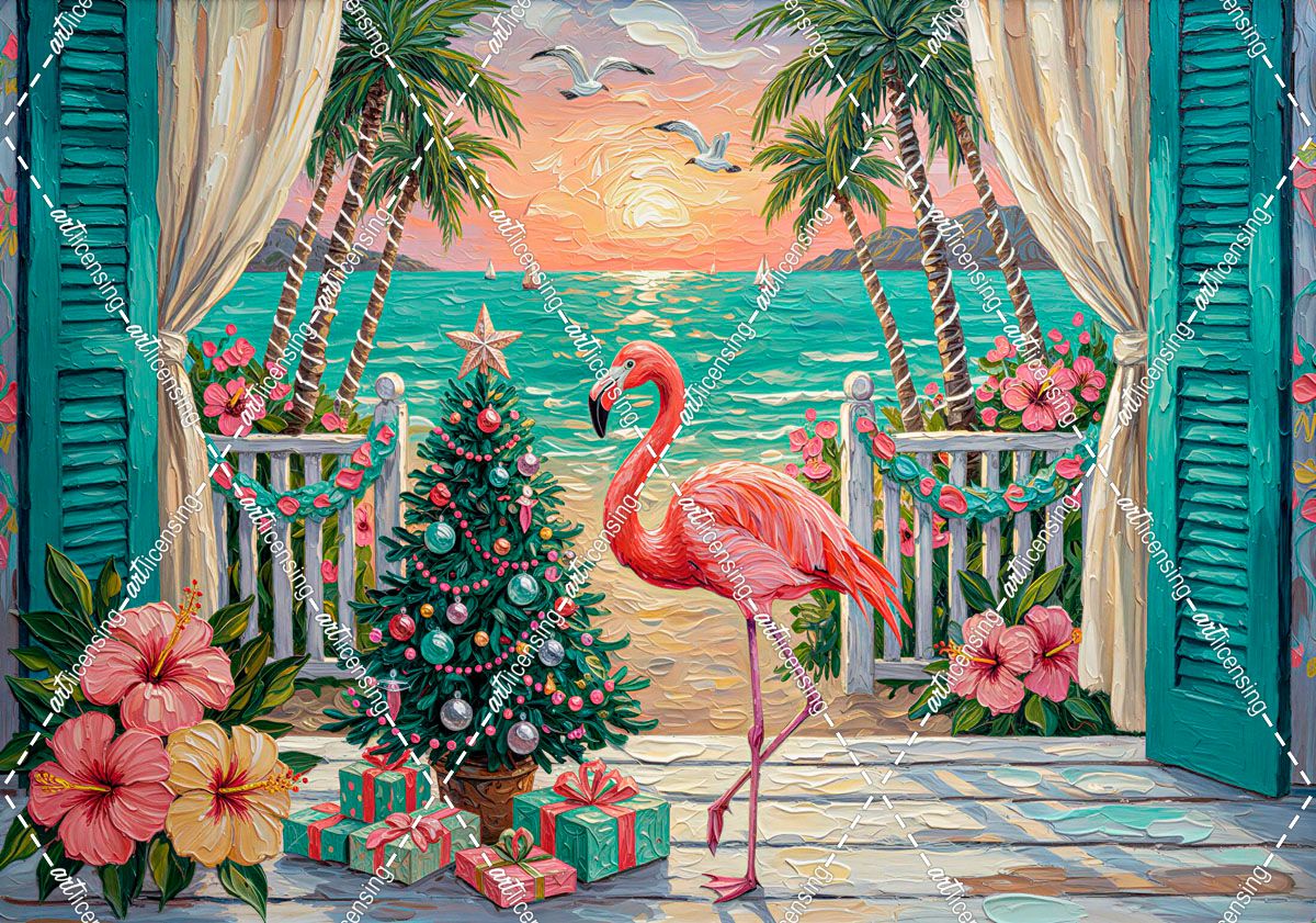 Flamingo Christmas Sunset