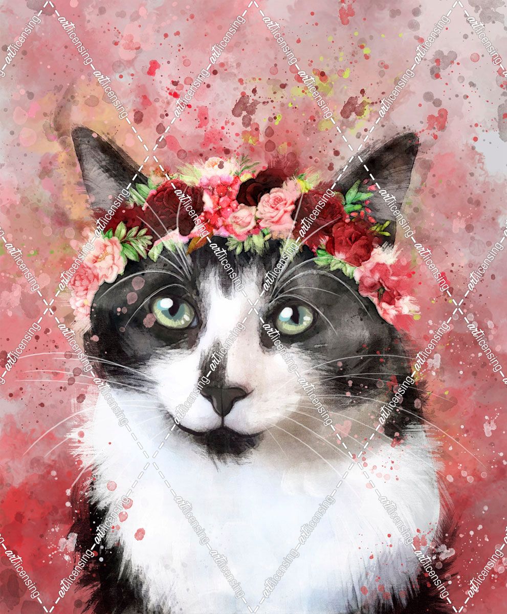 Flower Crown Tuxedo Cat