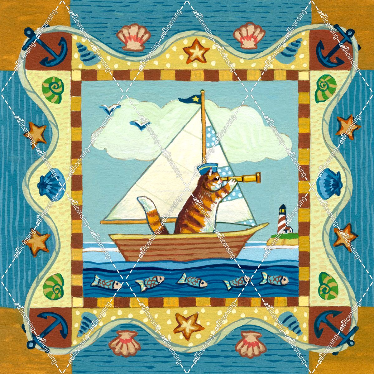 Folk Art Cat Sailing