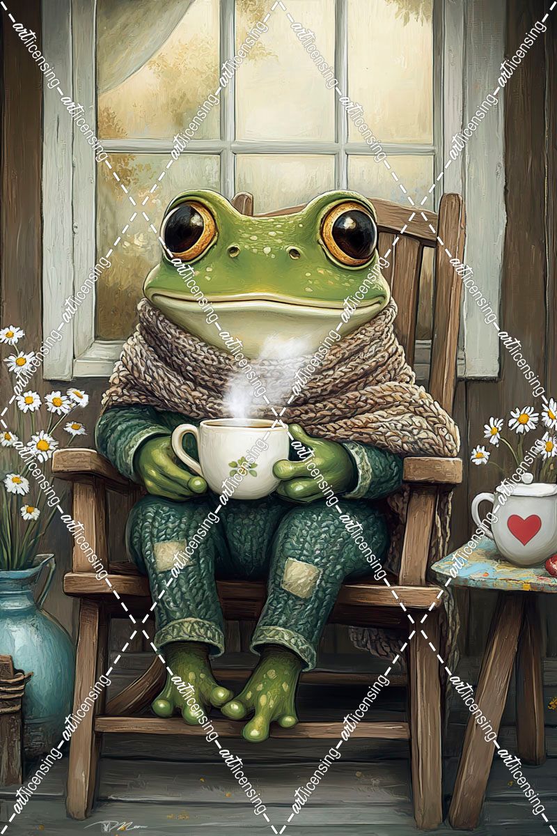 Frog On The Veranda Drinking The Tea