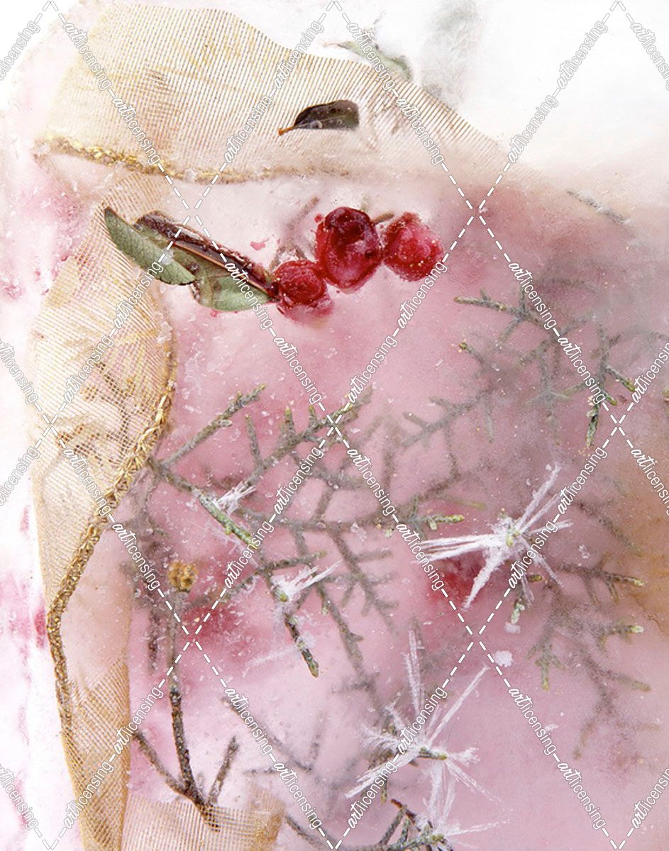 FS878 FrozenGoldTranspRibbon&redBerries&GreenBranches