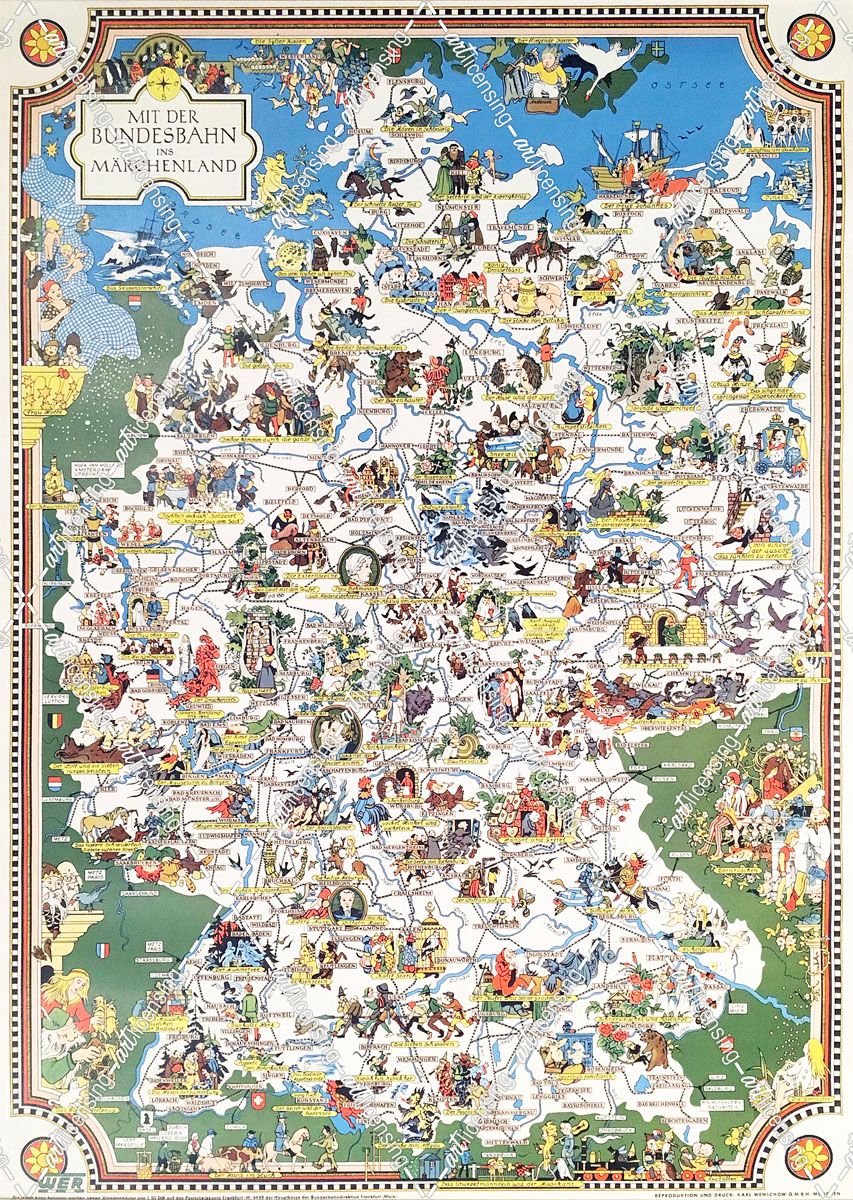German Fairytale Map Leo Faller Bundesbahn
